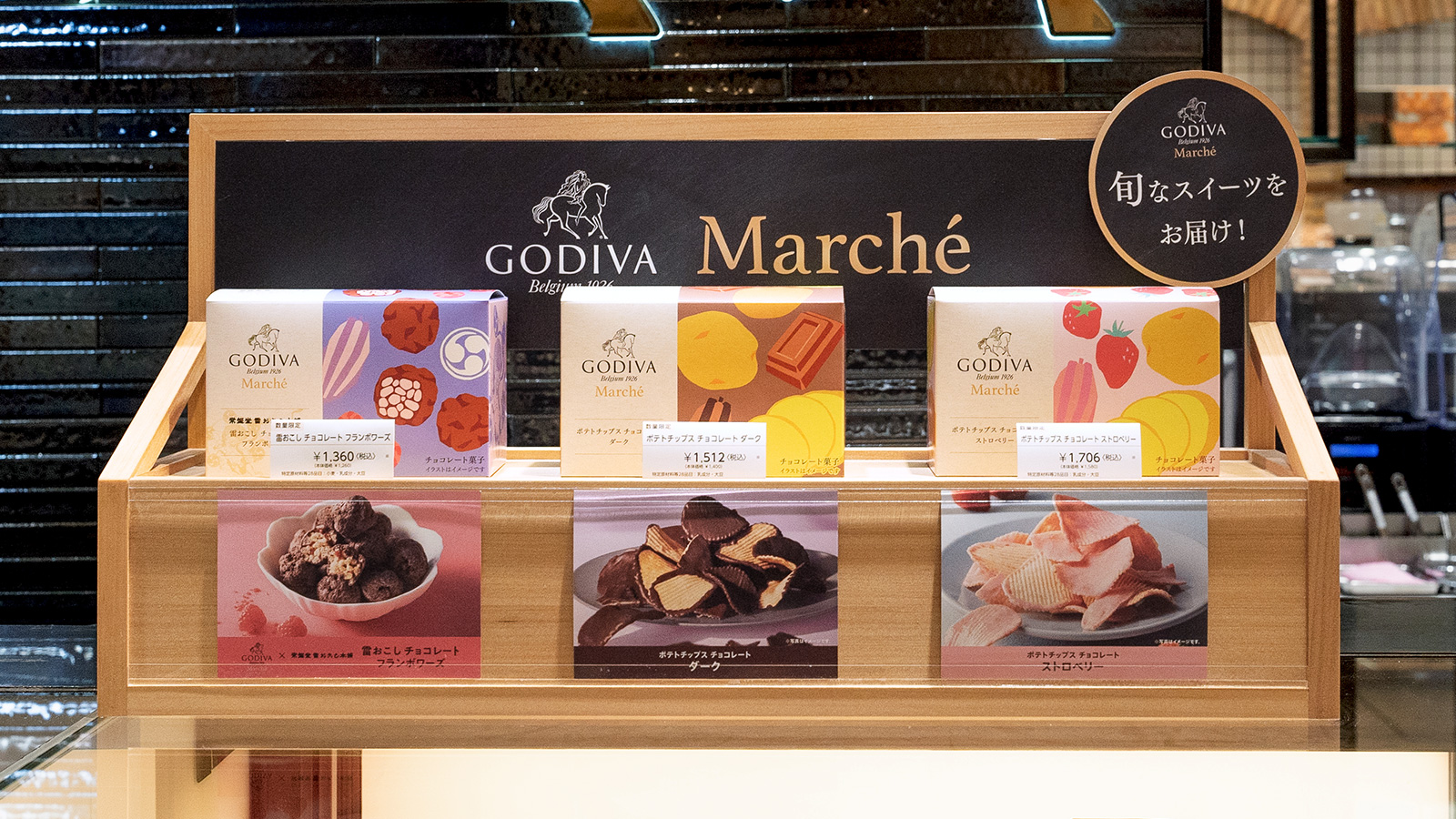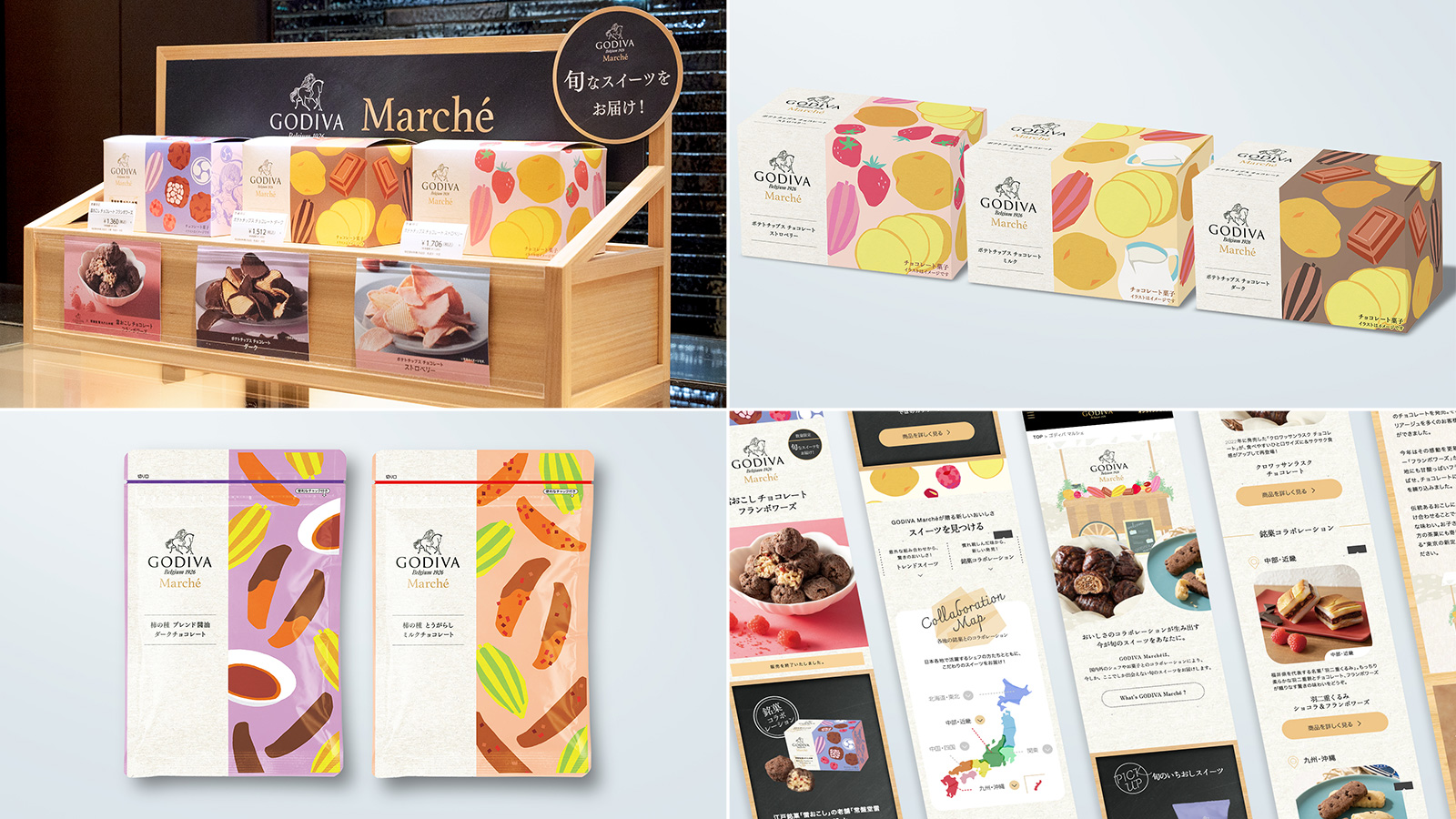 最終的にはネーミングを「ゴディバ マンスリー シェフズ セレクション」から定義した世界観に則した「ゴディバ マルシェ」に刷新し、ロゴ、商品パッケージ、店頭什器、Webサイトへと展開し、店頭とデジタルを一つのストーリーで結びました。