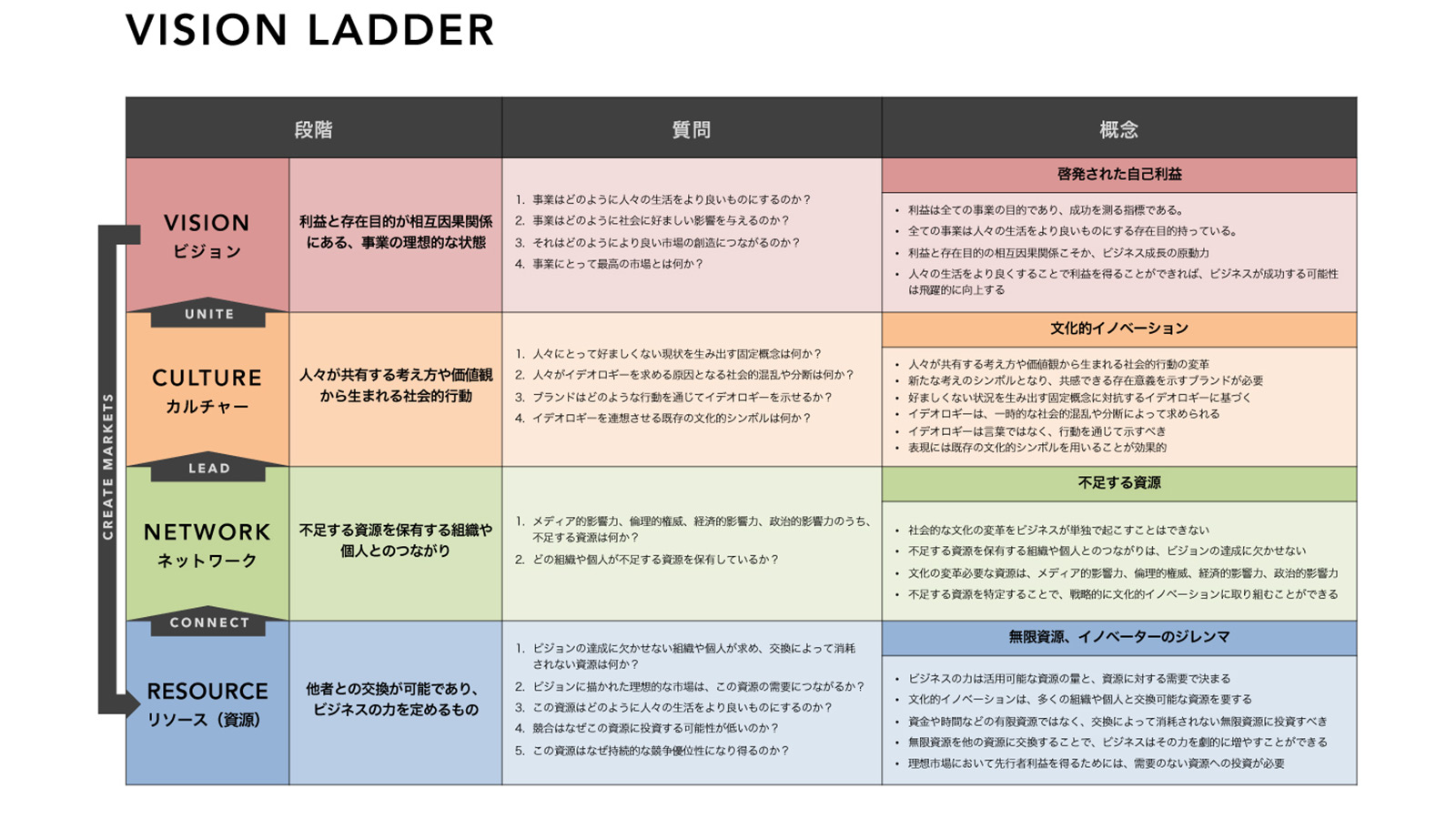 そして、パーパスとビジョンの違いについても解説した上で、FICCのフレームワーク「ビジョンラダー®︎」や「6つの成立要件」についても紹介しました。