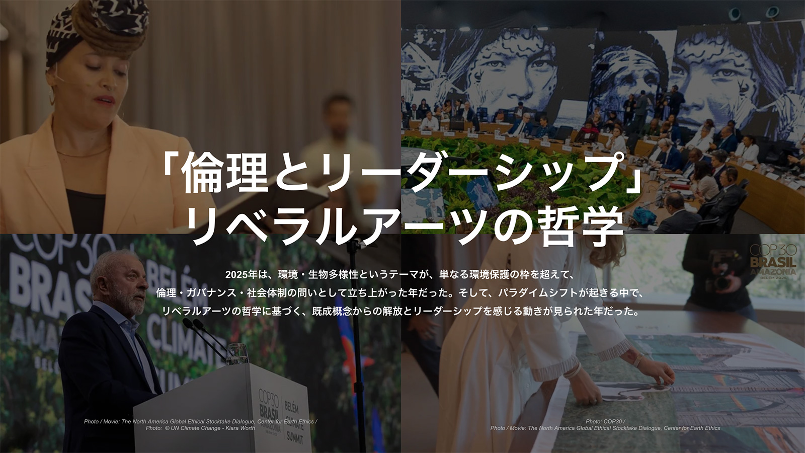 2025年は、環境・生物多様性というテーマが、単なる環境保護の枠を超えて、倫理やガバナンス、社会体制そのものを問い直す問題として立ち上がった年でした。気候変動や生態系の崩壊は、もはや予測や警告の対象ではなく、私たちの日常を規定する前提条件となりつつあります。こうしたパラダイムシフトの中で、既成概念を問い直し、何を前提として世界と向き合うのかを考え直すリベラルアーツの哲学に基づくリーダーシップを感じられる動きが見られました。
