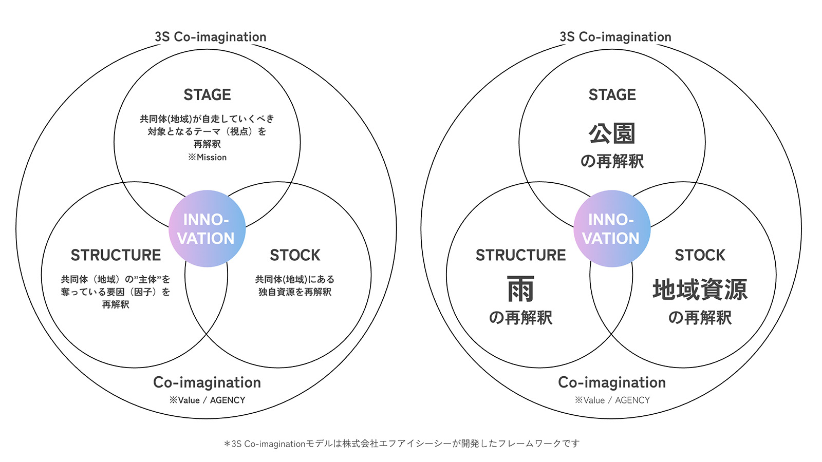 今回考案した『3S Co-imagination™︎ モデル』は、「固定概念がもたらすルール(Structure)」「領域(Stage)」「資源(Stock)」という3つの視点を掛け合わせることで、新たなイノベーションの視点を導き出すフレームワークです。