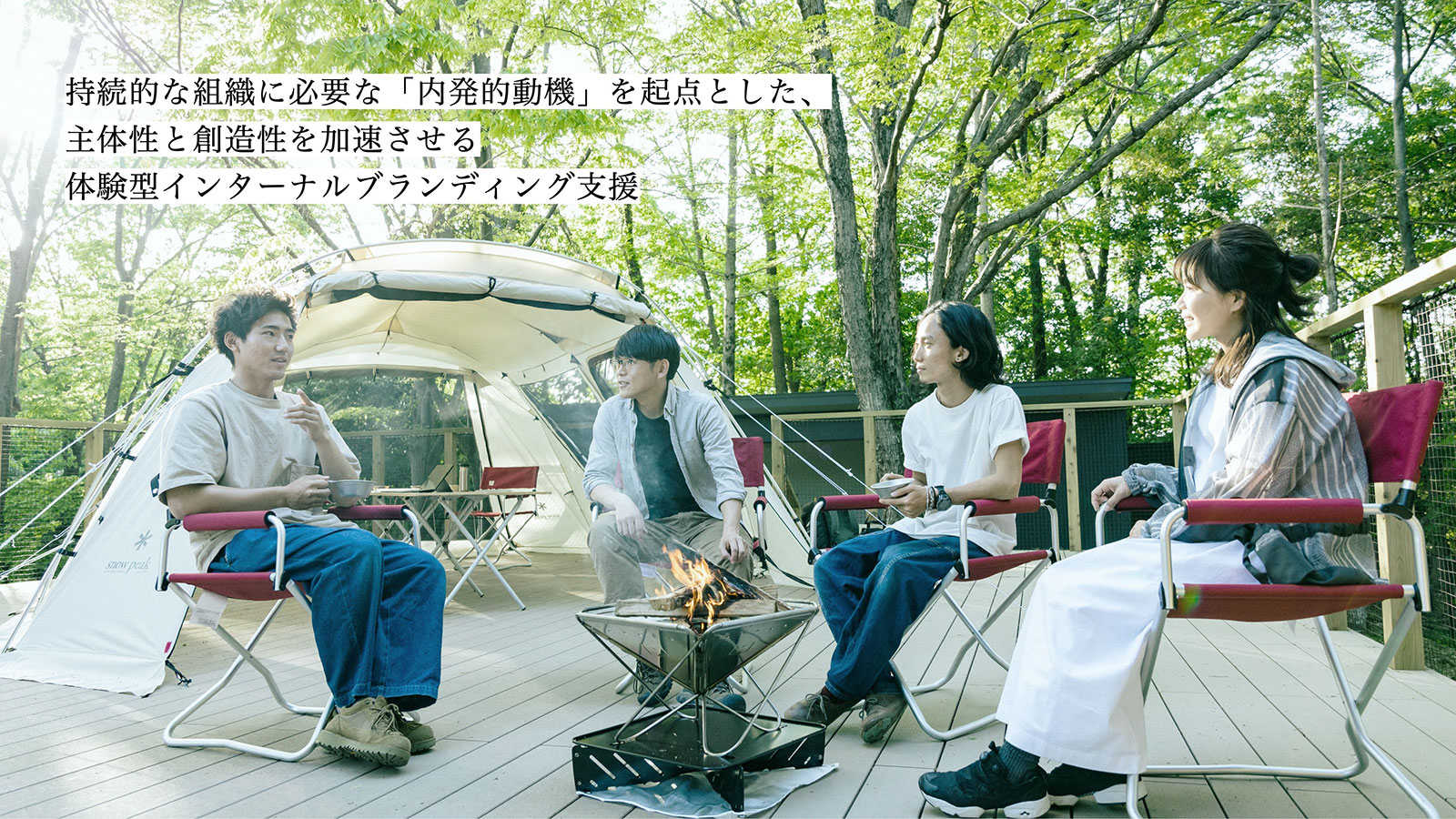 「INSIDE OUT:DOOR」は、この「内発的動機」を捉えたうえで、さらに自然の力を借りながら、個人の創造性や主体性を引き上げ、人的資本の価値最大化を目指すインターナルブランディング支援サービスです。普段のオフィスを離れたアウトドアという非日常の環境を活用し、心理的安全性と開放感のある体験を通じて、個人の想いを解放します。自然の中での対話によって認識変容を促し、企業の大義と個人のミッションを結び直すことで、行動変容のきっかけを生み出し、組織全体の主体性と創造性を加速させることを目的としています。